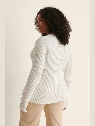 ribbed knitted buttoned long sleeve top